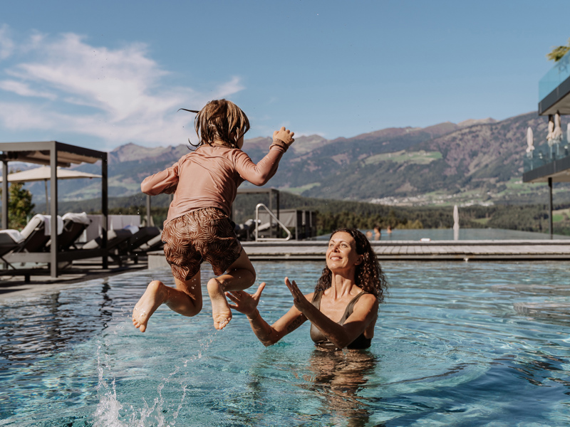 The rooms and suites of the hotel are the epitome of comfort and style, elegantly furnished to ensure a rejuvenating stay. Our wellness area, a paradise spanning 3,500 m², is designed for absolute relaxation: seven pools, covering a total of 500 m² of water surface, ranging from the luxurious panoramic indoor pool to the magnificent infinity outdoor pool, to the exclusive rooftop pool, reserved for adults. Our exclusive Premium Spa for adults offers a wide range of wellness experiences: Event sauna with panoramic views, herbal bio-sauna, steam bath, infrared sauna, whirlpool, and various relaxation areas. For those seeking complete well-being, our vital programme offers daily sessions in Qigong, Yoga, Pilates, Nordic walking, and fitness.