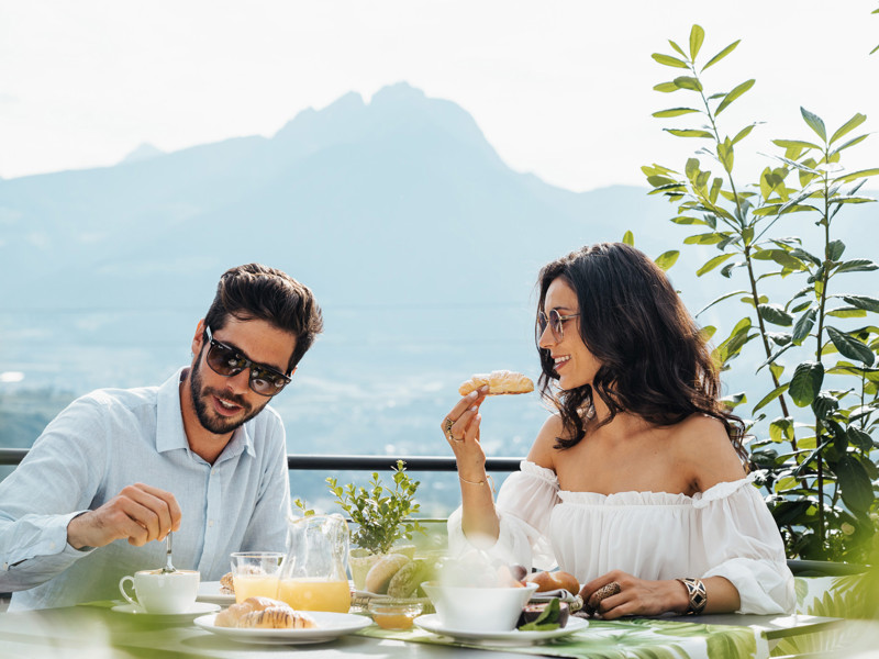 The family-run La Maiena Meran Resort in Marling impresses with a luxurious ambience with heart and a panoramic dream location above the rooftops of Meran. Just a few minutes from the town, our hotel surrounded by sun-drenched apple orchards offers a wide panorama from Mediterranean gardens to imposing South Tyrolean mountain peaks and an ideal starting point for a variety of activities. Following the refurbishment in 2024, this exceptional holiday home will be even more spacious and modern with new highlights such as the Sensa Spa.