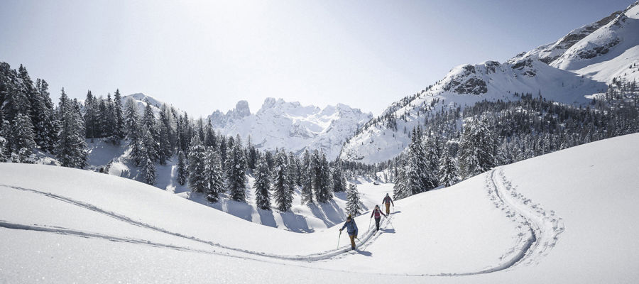 Alors que les pistes sont en effervescence et que les locaux d'après-ski sont pleins de joie et d'allégresse, les randonneurs à ski et les marcheurs trouvent le calme, une nature intacte et des refuges rustiques à l'écart des domaines skiables. Mais attention aux avalanches !
